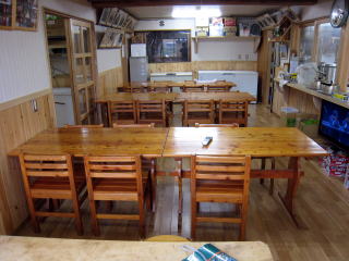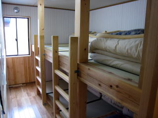 客室 1部屋10人(かいこ棚 上段5人 下段5人) 寝具はミズノのブレスサーモを使用しています。 個室はございません。 食堂 お客様に出来るだけ温かく、美味しく、安全な食事を提供できるよう、心掛けております。 ・アレルギーのある方はお知らせください。 シャワー室 使用時間 13:30~18:30 1時間ごとに男女が交代となります。